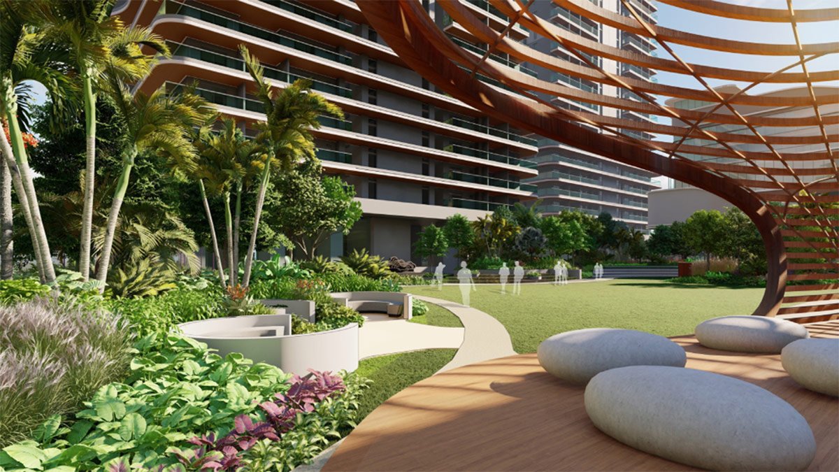 The Fortune Grande project is a high-density development featuring very tall towers. The open spaces have been thoughtfully designed across different tiers and levels.